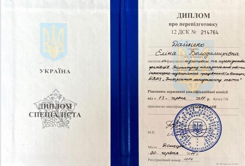 Донецкий филиал Киевского Института последипломного образования педагогических и инженерных работников (факультет психология, специальность — психолог-консультант)